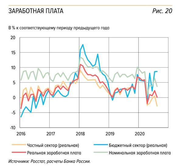 «В торговле, транспорте, строительстве, обрабатывающих производствах, гостиничном и ресторанном обслуживании заработная плата в реальном выражении сложилась ниже уровня прошлого года», — констатирует центробанк.