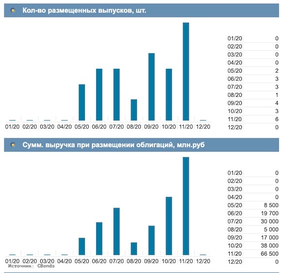 По итогам ноября субъекты РФ разместили на Московской бирже облигации на рекордную в этом году сумму — 66,5 млрд рублей, следует из данных Cbonds.