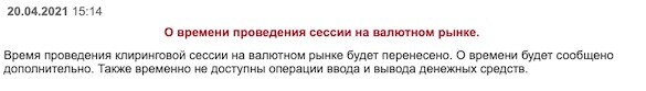 Также переносится время проведения клиринга в валютной секции. «О времени будет сообщено дополнительно», — говорится в сообщении биржи.
