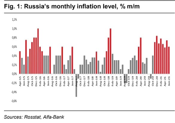 «Инфляционное давление нарастает через несколько каналов — как внешних, так и внутренних, что может ухудшить динамику инфляции как минимум до конца этого года», — говорит главный экономист Альфа-банка Наталия Орлова.