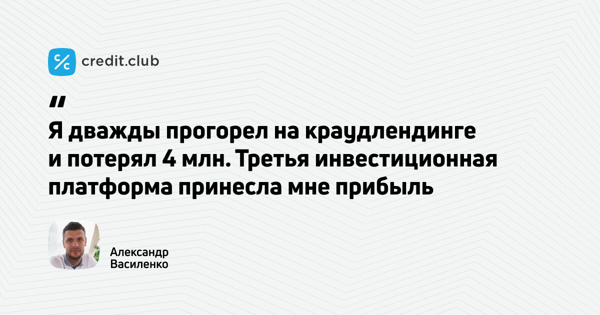 Привет! Эта статья будет полезна тем, кто хочет понять механизм работы краудлендинга и узнать, как можно снизить риски потери активов. Поделимся правилами вложения в краудлендинг, которые использует наш клиент Александр Василенко — активный инвестор с инвестиционным портфелем в 10 млн рублей.