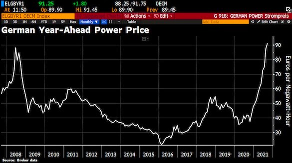 В целом по еврозоне индекс потребительских цен в августе вырос на 3% — максимально за 10 лет. При этом в Германии потребительская инфляция достигла 3,9% — уровня, которого статистика не видела с 1993 года. Промышленная инфляция, измеренная на уровне отпускных цен производителей, и вовсе стала рекордной за всю историю зоны евро — 12,2%.