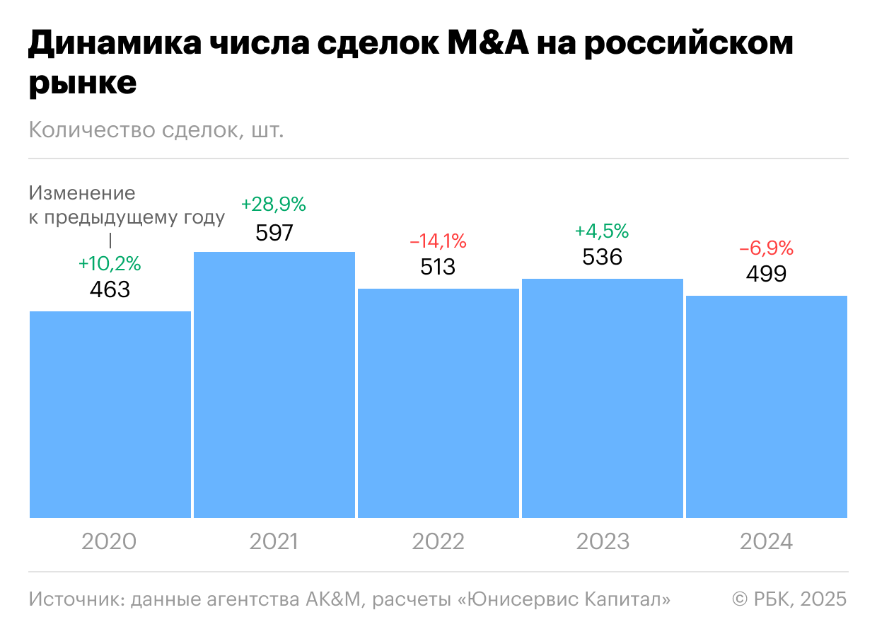Среди лидеров слияний по числу сделок — строительство, торговля и услуги, IT и АПК.